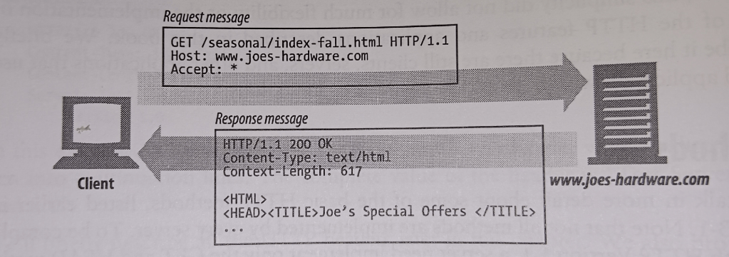 Now When We browse certain link or page on webserver it send GET request to get that page or link from Webserver. Here in image when Client (Browser) ask for URL (web page) www.jeos-hardware.com/seasonal/index-fall.html then Browser create request for GET seasonal/index-fall.html and put Host as www.jeos-hardware.com . Now, Webserver reply with resonse with web page “<HTML><HEAD><TITLE>Jeo’s Special Offer</TITLE> … “